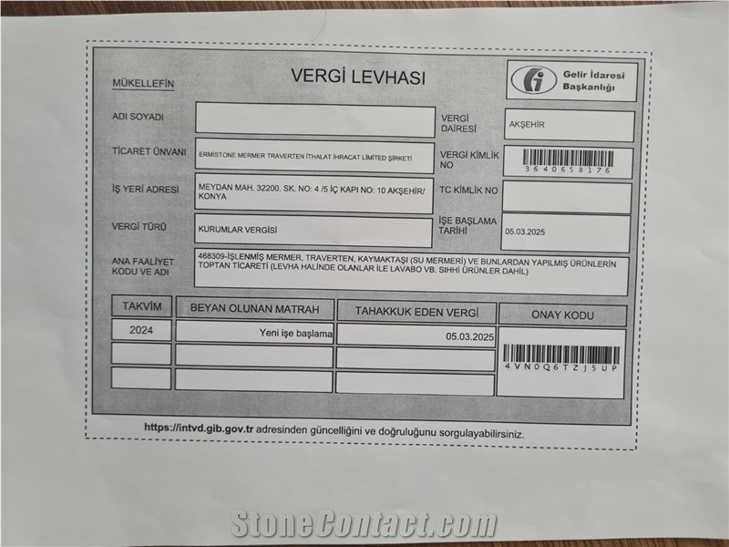 Ermistone Marble & Stone was founded in 2024 in Akşehir, Konya and is a company specializing in marble and natural stone production. It both manufactures in its own factory and offers subcontract manufacturing services with high quality standards.